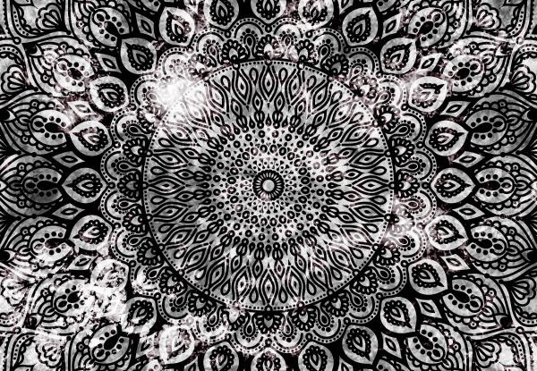 Ein abstraktes Mandala aus Aquarellfarben. Durch die schwarz-weißen Farben des Mandalas lässt sich diese Fototapete in fast jeder Wohnung gut kombinieren.