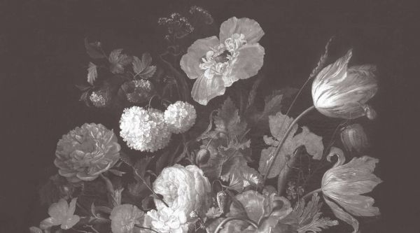 Tapete - Barockblumen-Stillleben - dunkel sepia