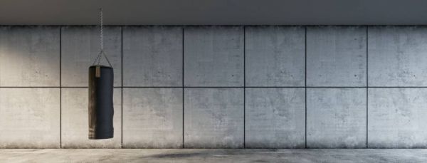 Betonwand mit Boxsack in verschiedenen Materialien