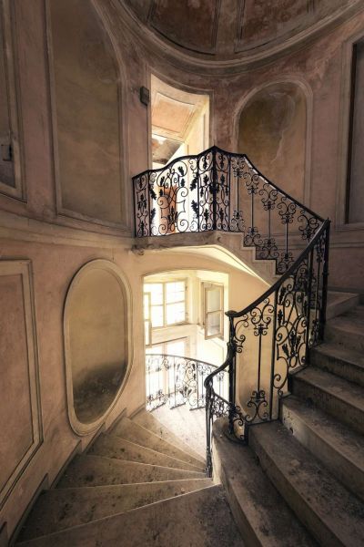 Das wunderschöne Treppenhaus einer prunkvollen und riesigen Villa irgendwo in Italien. Die Muschel am oberen Rand der Treppe gab dem Gebäude seinen Namen in der Urbex-Szene