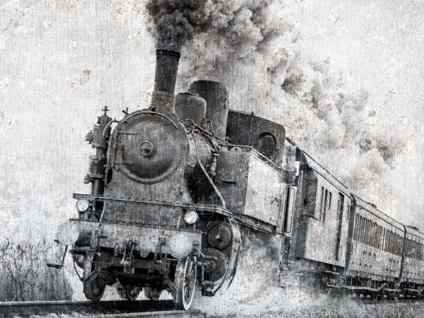 Dampflokomotive mit einer alten Struktur. Kombinieren Sie diese Tapete in Ihrem Zuhause und schaffen Sie eine einzigartige Atmosphäre im Raum.