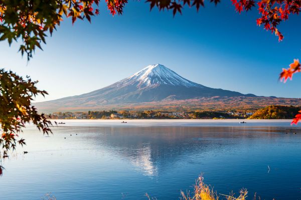 Der Berg Fuji am Nachmittag im Herbst. Verwenden Sie diese Fototapete z. B. in Ihrem Wohnzimmer.