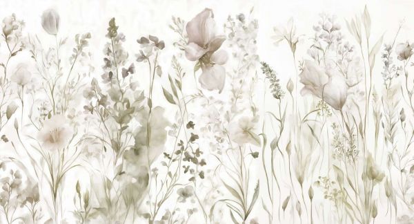 Diese grüne Variante strahlt Frische und Verbundenheit mit der Natur aus. Der Schwerpunkt liegt auf den verschiedenen Grüntönen, von Salbei bis Moosgrün, die elegant mit sanften Blumendetails in Weiß und Blassgelb harmonieren. Die Aquarelltechnik verleiht dem Gesamtbild Leichtigkeit und Schichtung, als stünde man mitten in einem offenen Feld. Perfekt für ein botanisches oder eklektisches Interieur, in dem Pflanzen und natürliche Materialien eine Hauptrolle spielen. Denken Sie an ein Wohnzimmer mit Holzakzenten, Leinenkissen und Zimmerpflanzen, wo dieses Design ein verbindendes und erfrischendes Element wird. Auch in einem modernen Raum mit viel Licht und minimalistischen Möbeln sorgt diese grüne Blumenwiese für Balance und Ruhe. Der sanfte Übergang zwischen Blume und Blatt macht es zu einem vielseitigen Design, das in viele verschiedene Wohnstile passt.