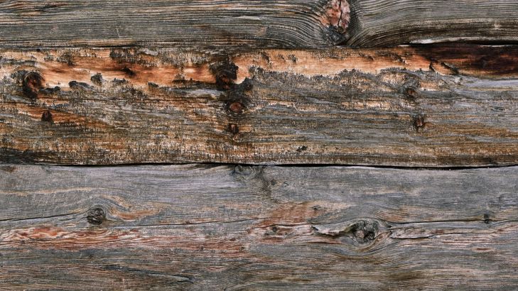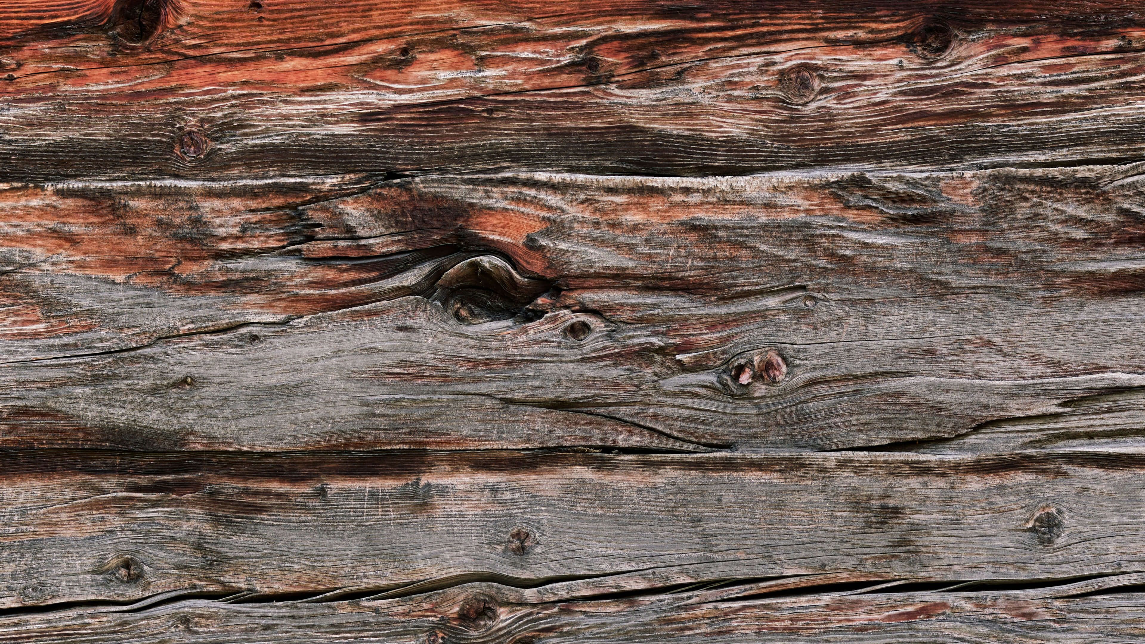 Dunkel verwittertes Holz in verschiedenen Materialien