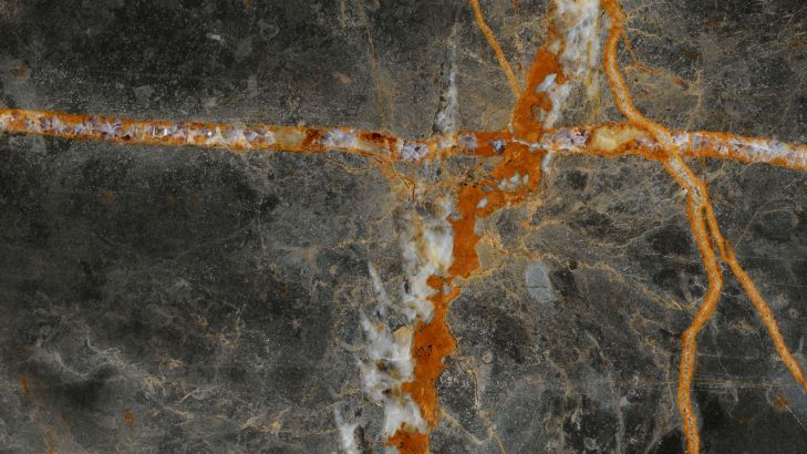 Dunkler Marmor mit kupferfarbenen Schattierungen. Die Kupfertöne verleihen dieser Fototapete einen industriellen Look.