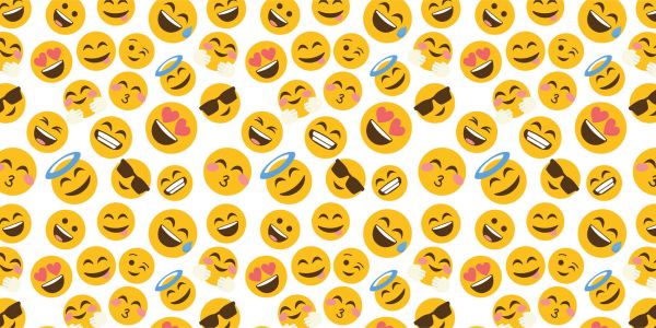 Fototapete mit einem Muster von niedlichen und lustigen Smiley Emojis auf einem weißen Hintergrund.