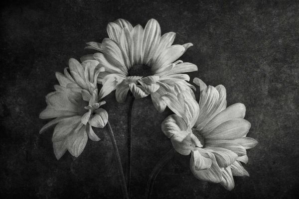 Drei Blumen in Schwarz und Weiß. Kombinieren Sie diese Fototapete im Schlafzimmer oder Wohnzimmer.