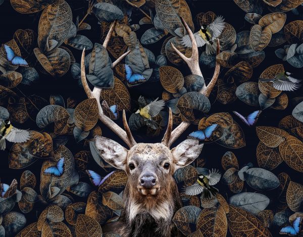 Forest Deer ist ein echter Blickfang für Ihr Interieur. Die blauen Schmetterlinge verleihen diesem Druck eine fröhliche Wirkung.