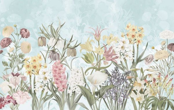 Tapete - Frühjahrsblumen - Nebeliges Aqua