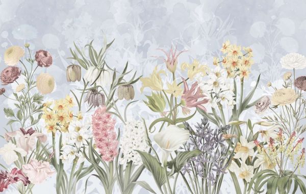 Tapete - Frühjahrsblumen - Sanftes Himmelblau