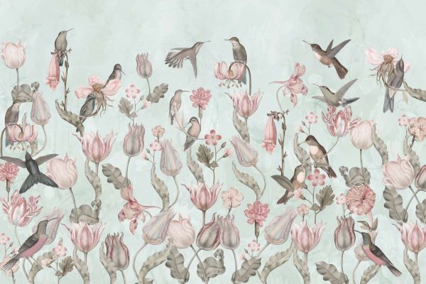 Tapete - Frühling Kolibri Symphonie - Minz Wiese