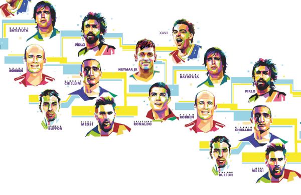 Fototapete mit verschiedenen berühmten Fußballspielern.