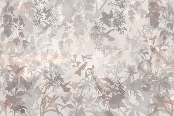 Ein raffiniertes Design mit zarten Blumen und eleganten Vögeln, subtil in einer harmonischen Komposition verwoben. Das Farbschema verleiht eine ruhige und elegante Atmosphäre, perfekt für jeden Raum.