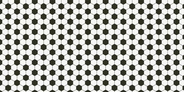 Tapete mit einem Schwarz-Weiß-Fliesenmuster mit geometrischen Sechsecken. Mit etwas Phantasie konnte man einen Fußball darin erkennen.