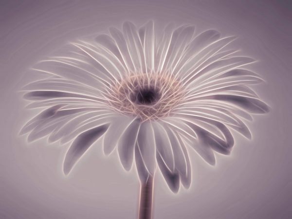 Eine Gerbera-Blüte mit lila-weißem Effekt. Kombinieren Sie diese Fototapete in Ihrer Wohnung für noch mehr Atmosphäre.