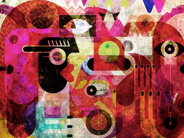 Buntes Graffiti mit Gesichtern im Vintage-Look. Die Farben verleihen dem Raum einen Vintage-Look.