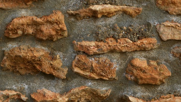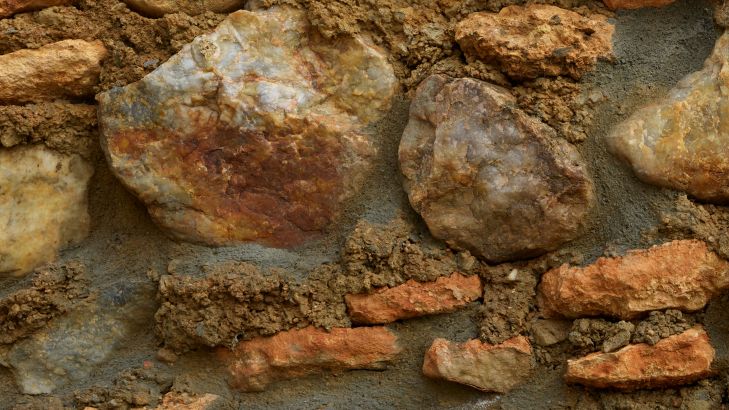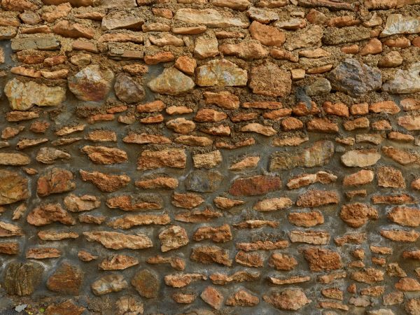 Große Wand mit Rohsteinen in verschiedenen Größen