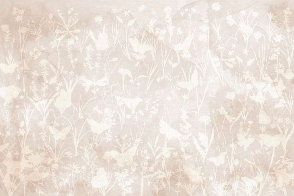 Ein raffiniertes Muster mit zarten Blumen und anmutigen Schmetterlingen in sanften Pastellfarben. Das Design strahlt eine verträumte und beruhigende Atmosphäre aus, ideal für einen ruhigen Raum.