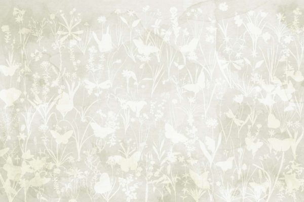 Ein raffiniertes Muster mit zarten Blumen und anmutigen Schmetterlingen in sanften Pastellfarben. Das Design strahlt eine verträumte und beruhigende Atmosphäre aus, ideal für einen ruhigen Raum.
