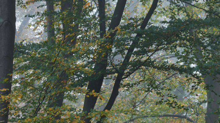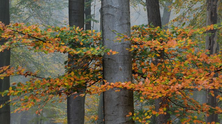 Tapete - Herbstfarben im nebligen Wald
