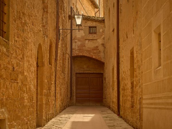 Italienische Straße mit Laterne an einem Sommertag. Holen Sie sich mit dieser Fototapete ein Stück Italien in Ihr Zuhause.