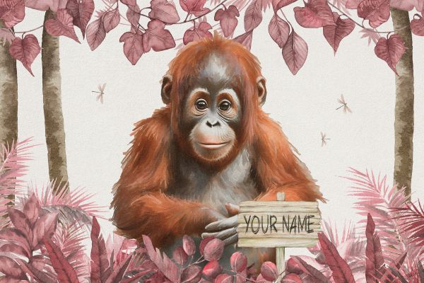 Tapete - Junger Orang-Utan im Dschungel rosa