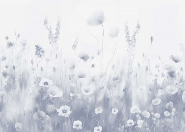 Lavendeltinten und violette Nuancen bilden die Grundlage dieses Aquarellentwurfs, wodurch die Blumen eine bezaubernde und romantische Ausstrahlung erhalten. Die feinen Pinselstriche verleihen dem Ganzen einen poetischen Charakter.Dank der beruhigenden violetten Untertöne hat dieses Design eine entspannende Wirkung, ideal für Räume, in denen Entspannung im Mittelpunkt steht.