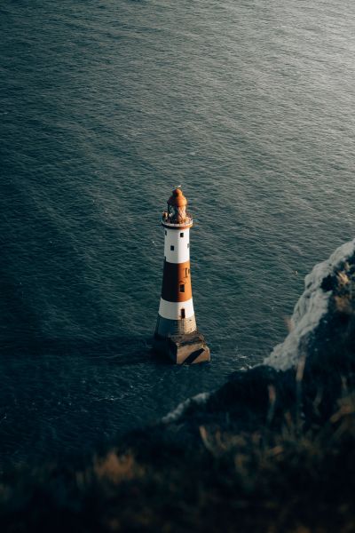 Leuchtturm an der englischen Küste in verschiedenen Materialien