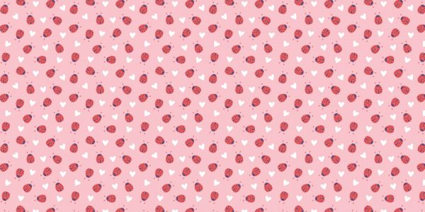 Fototapete von Marienkäfern mit weißen Herzen. Kombinieren Sie diese Tapete im Kinderzimmer, um mehr Atmosphäre zu schaffen.