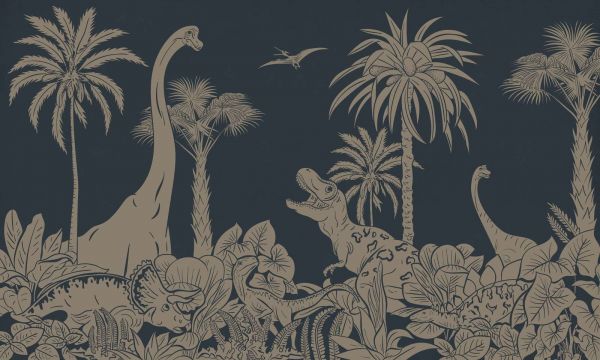 Tapete - Monochrome Dino - Blue Vintage