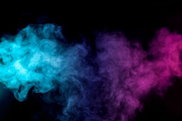 Blauer und rosa Rauch auf schwarzem Hintergrund. Der schwarze Hintergrund lässt den Rauch geheimnisvoll erscheinen.