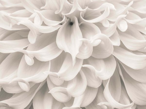 Nahaufnahme einer Dahlienblüte in verschiedenen Materialien