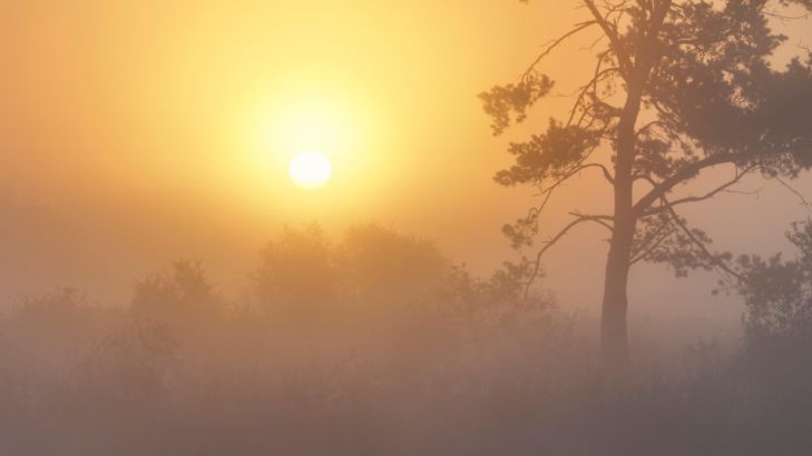 Tapete - Nebliger Sonnenaufgang