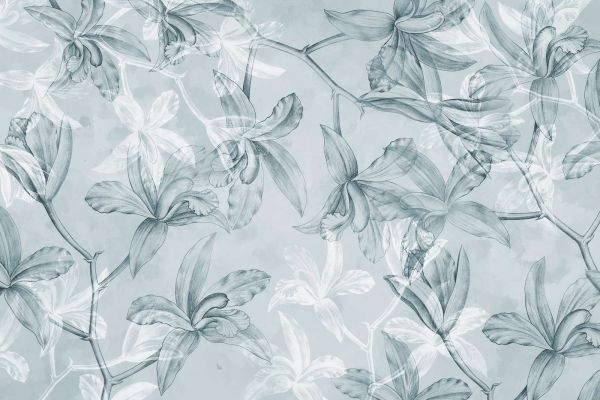 Dieses Design bietet eine verfeinerte Interpretation von Orchideen, bei der feine Bleistiftlinien mit sanften Aquarellakzenten kombiniert werden. Die zarten Pastellfarben, die von sanftem Rosa und Lila bis hin zu frischen Blautönen reichen, schaffen einen harmonischen und beruhigenden Effekt. Die Blumen scheinen fast in Bewegung zu sein, als würden sie vor einem Hintergrund von traumhaften Aquarellstrukturen tanzen. Dieses Design passt perfekt in ein romantisches Interieur oder einen beruhigenden modernen Raum. Kombinieren Sie es mit weißen oder hellgrauen Möbeln für eine minimalistische Ausstrahlung oder fügen Sie sanfte Stoffe und goldene Akzente hinzu, um einen Hauch von Luxus zu verleihen. Das Design kann in Wohnzimmern, Schlafzimmern oder sogar stilvollen Büroräumen angewendet werden, wo es eine beruhigende, aber stilvolle Aussage trifft. Die subtilen Muster und Farben sorgen dafür, dass sich das Design mühelos an verschiedene Stile anpasst, von modern bis klassisch.