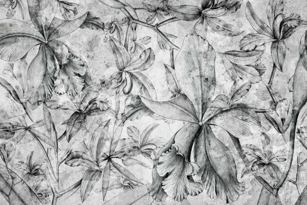Ein elegantes Design mit detaillierter Flora und dezenten Farben. Die fein ausgearbeiteten Linien und zarten Farbtöne sorgen für einen raffinierten Look, perfekt für eine ruhige und stilvolle Umgebung.