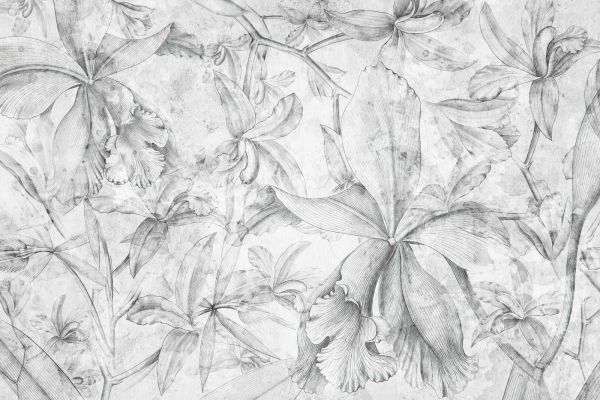 Ein elegantes Design mit detaillierter Flora und dezenten Farben. Die fein ausgearbeiteten Linien und zarten Farbtöne sorgen für einen raffinierten Look, perfekt für eine ruhige und stilvolle Umgebung.