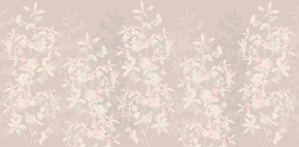 Ein raffiniertes Design mit dezenten Blumen und Schmetterlingen, verteilt auf sanfte Töne. Die Farben strahlen eine zarte und heitere Atmosphäre aus, perfekt für einen Raum, der sowohl Ruhe als auch Eleganz braucht.