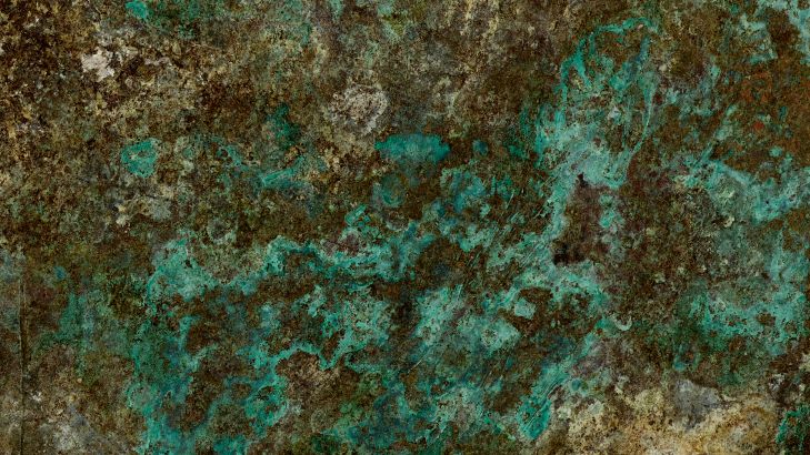 Schöne Oxidation auf Metall. Bringen Sie mit dieser Tapete schöne Grün- und Brauntöne in Ihren Raum.