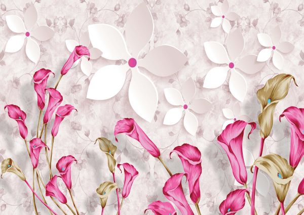 Tapete - Rosa weiße Blumen