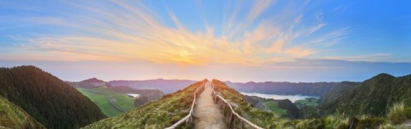 Fototapete mit Panoramabild eines schönen Wanderwegs in einem Gebirge in Portugal mit Blick auf verschiedene Seen.