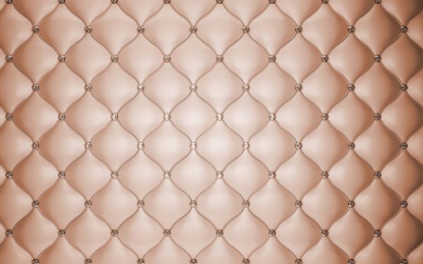 Wand aus champagnerrosa beschriftetem Leder und glänzenden Knöpfen.