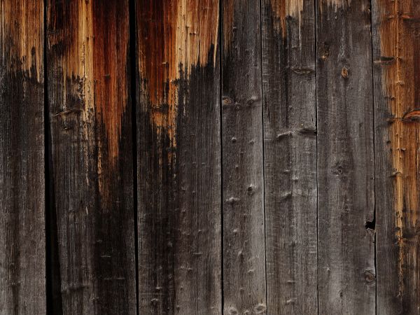 Schwarz gebranntes Holz in verschiedenen Materialien