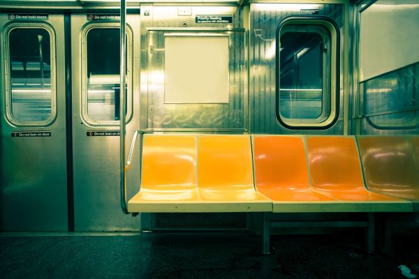 Gelbe Zugsitze in einem Zug in New York.