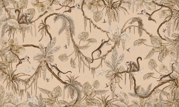 Tapete - Playful Monkeys - Vintage - Beige