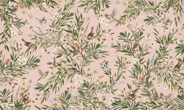 Tapete - Playful Robins - Pink