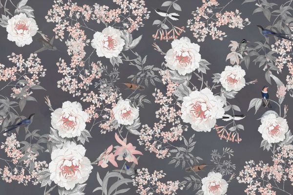 Eine raffinierte Komposition natürlicher Schönheit, in der Blumen, Vögel und botanische Elemente in harmonischer Balance dargestellt sind. Dezente Farben und detaillierte Muster sorgen für einen eleganten und zeitlosen Look, der jeden Raum verwandelt.