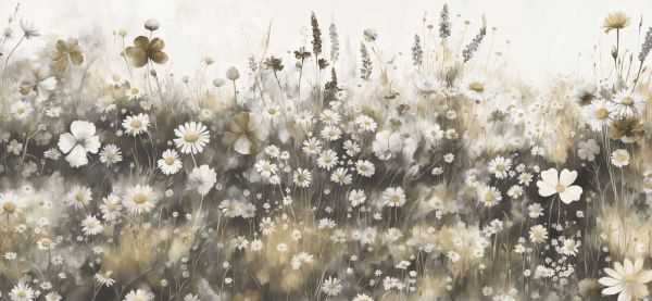 Die warmen Taupetöne in diesem Design erwecken die natürliche Schönheit einer Blumenwiese auf eine zurückhaltende und raffinierte Weise zum Leben. Die sanften Blumen und natürlichen Farbtöne schaffen eine ruhige und entspannende Atmosphäre.