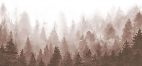 Aquarell Wald auf Fototapete. Durch den Aquarell-Look eignet sich diese Fototapete für fast jeden Raum.